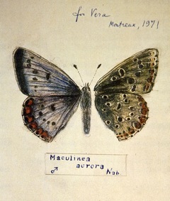 In honor of Vladimir Nabokov’s upcoming birthday, we thought we’d take a look at the literary great’s artistic expression of the one thing he loved as much as language – lepidoptera. In his whirling autobiography, Speak, Memory, Nabokov writes, “From the age of seven, everything I felt a connection with a rectangle of framed sunlight was dominated by a single passion. If my first glance of the morning was for the sun, my first thought was for the butterflies it would engender… I have hunted butterflies in various climes and disguises: as a pretty boy in knickerbockers and sailor cap; as a lanky cosmopolitan expatriate in flannel bags and beret; as a fat hatless old man in shorts.” We must say, we love the idea of this in its every iteration. In general, most of the butterflies Nabokov drew were for “family use” – he sketched them as inscriptions in the title pages of his novels for his wife, Véra, his son, or other members of his family. Though he knew a great deal about butterflies, he never drew real ones – all of the drawings represent invented species, both in design and in name. See some of our favorite specimens after the jump.