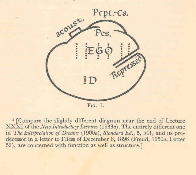 The diagram on page 24 (reproduced in one of the attached figures) links Freud's model to the diagram presented on Lecture XXXI (1933a), to a simplified flat one in "The Interpretation of Dreams" (1900a) and in Freud's letter to Fliess ( December 6, 1896, letter 52). In 1923 (following his initial work with aphasics) Freud remarked that "in essence a word is after all the mnemic residue of a word that has been heard." (page 21, 19123,XIX).