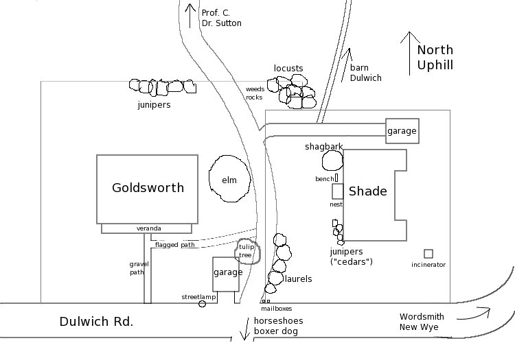 up from Dulwich Rd. to Kinbote's front door. Gradus, facing the