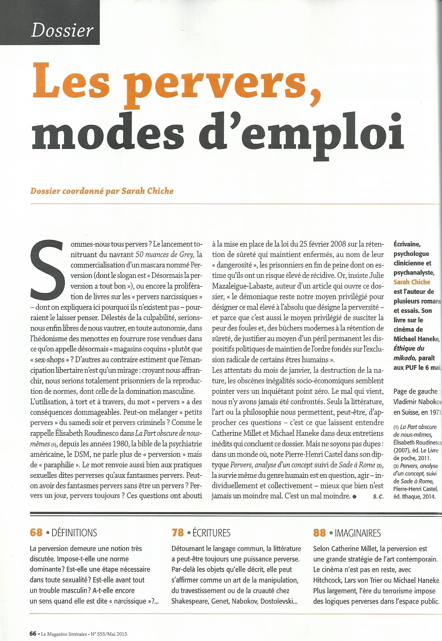 d´emploi" , organized by Sarah Chiche for "Le Magazine Littéraire" May 2015.