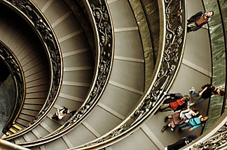 angels, and the spiral staircase at the Vatican Museum, with its winding