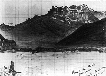 Горы близ Монтре. Рисунок Набокова. Август 1961г.