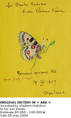 After placement of the writer's archives and manuscripts in the Berg Collection of the New York Public Library in 1991, this sale is the second and probably last major sale of important documents pertaining to Vladimir Nabokov.