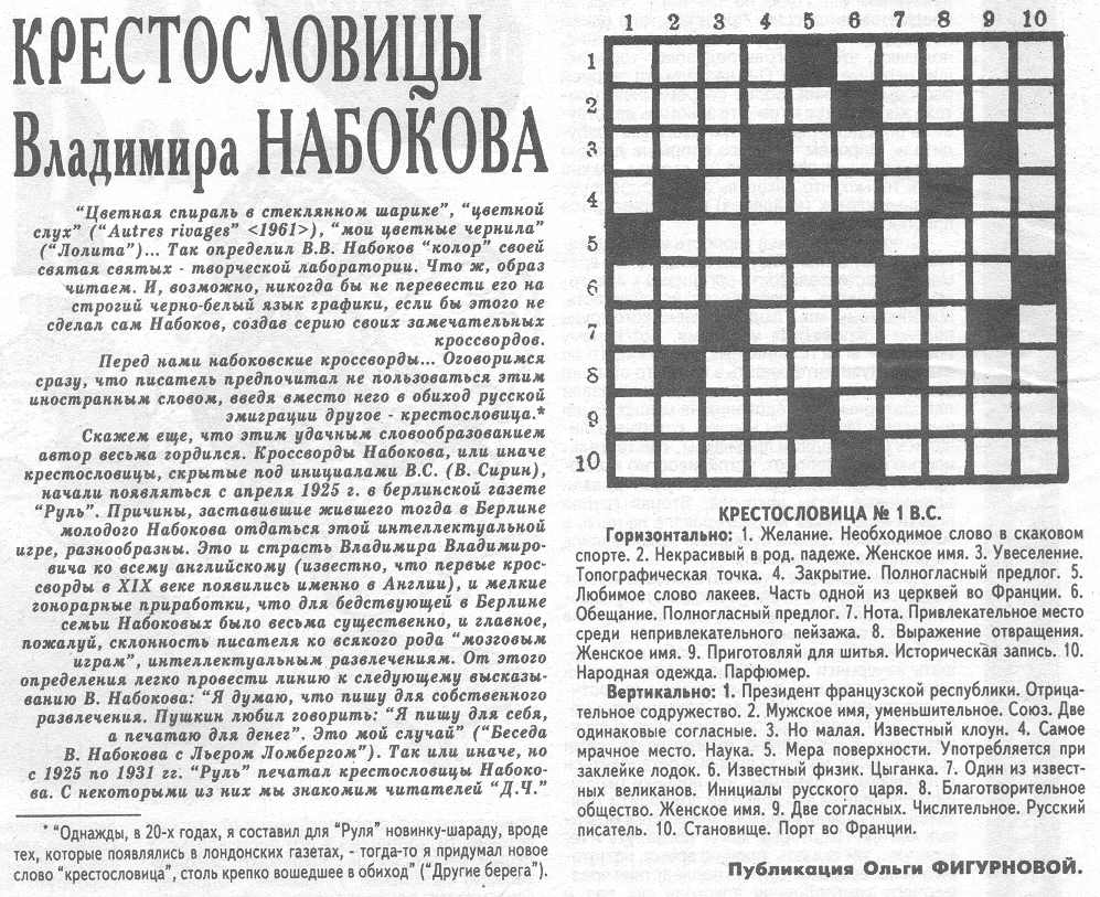 Fw: Крестословицы Владимира Набокова / Nabokov's Russian Crossword puzzles.