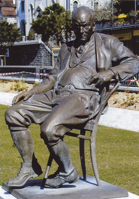 To celebrate Father's 100th birthday the City Council of Moscow presented to the city of Montreux a statue of VN, sculpted by the Rukavishnikovs, a father and son who believe they are distantly related to my grandmother's family. The face and figure are very good, considering that they were done from photographs taken at various times. On the other hand, the waistcoat and plus fours were not a typical costume of Nabokov's. I saw them when the statue was already cast and it was too late to make changes. After a gala ceremony at which Moscow and Montreux dignitaries and I spoke, the statue was placed temporarily inside the main (lake) entrance of the Montreux Palace. Now, an underground garage, facing the hotel between the Grand Rue and the lakeside promenade, has been completed, and topped by a small park. It is there that the statue found its permanent home. A letter of presentation from Mayor Luzhkov is on display in the hotel's Bridge Salon.