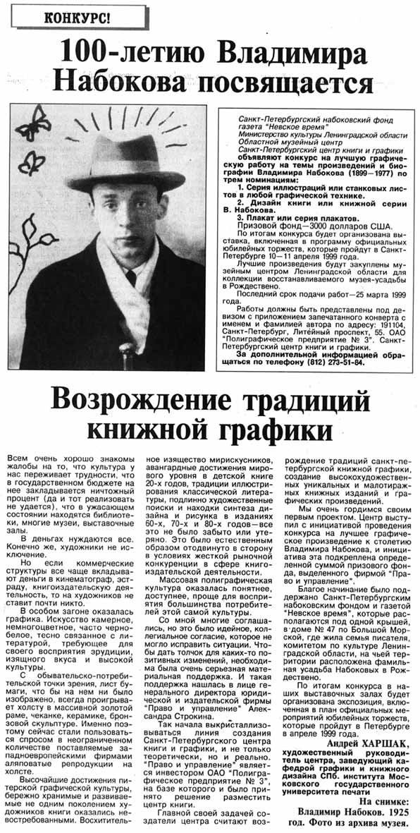 newspaper _Nevskii vremia_ announces a competition for Nabokov-related