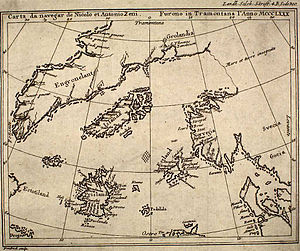 The Zeno map is a map of the North Atlantic first published in 1558 in Venice by Nicolo Zeno, a descendant of Nicolo Zeno, of the Zeno brothers.The younger Zeno published the map, along with a series of letters, claiming he had discovered them in a storeroom in his family's home in Venice. According to Zeno, the map and letters date from around the year 1400 and purportedly describe a long voyage made by the Zeno brothers in the 1390s under the direction of a prince named Zichmni.... Supporters of the Henry Sinclair legend suggest that Zichmini is a mistranscription of d'Orkney. The voyage supposedly traversed the North Atlantic and, according to some interpretations, reached North America.