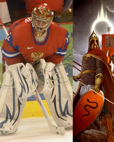 I came across several photographs of hockey player Evgeni Nabokov aparelled in sportive full glory.