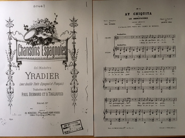published as "Chansons Espagnoles del Maestro Yradier", under the titles