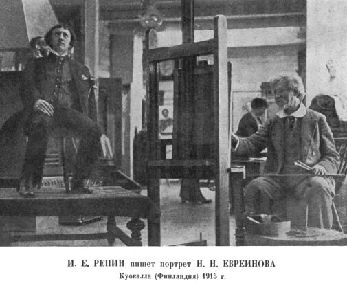Cf. "I. E. Repin paints a portrait of N. N. Evreinov," the photograph reproduced in Evreinov's "Оригинал о портретистах" ("The Model on Portraitists," Chapter One, "Paradoxical Self-Portraits"):