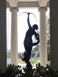 him perched in the cusp of her bow on the top of this statue of Diana: